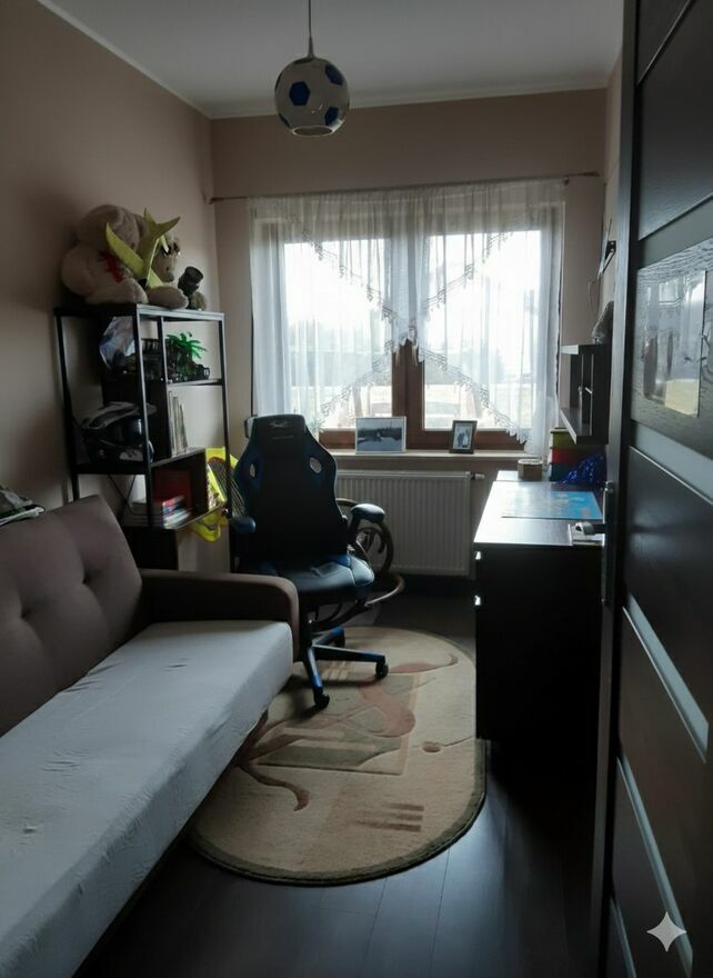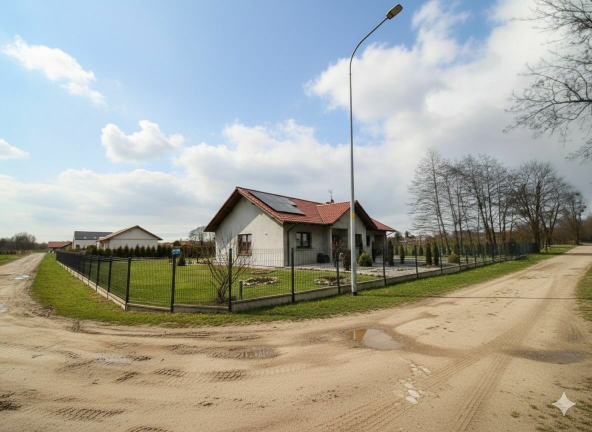 Dom z 2016 roku gotowy do zamieszkania. Posiada panele fotowoltaiczne, piec na ekogroszek, poddasze, które możesz wykorzystać jako dodatkową przestrzeń. Na terenie znajduje się garaż połączony bezpośrednio z domem, co zapewnia dodatkową wygodę, na działce również znajduje się blaszany garaż. Rolety zewnętrzne, okna trzyszybowe, brama garażowa na pilot, brama wjazdowa na pilot, cała działka ogrodzona, przed domem wyłożona kostka, ocieplenie elewacji styropianem.